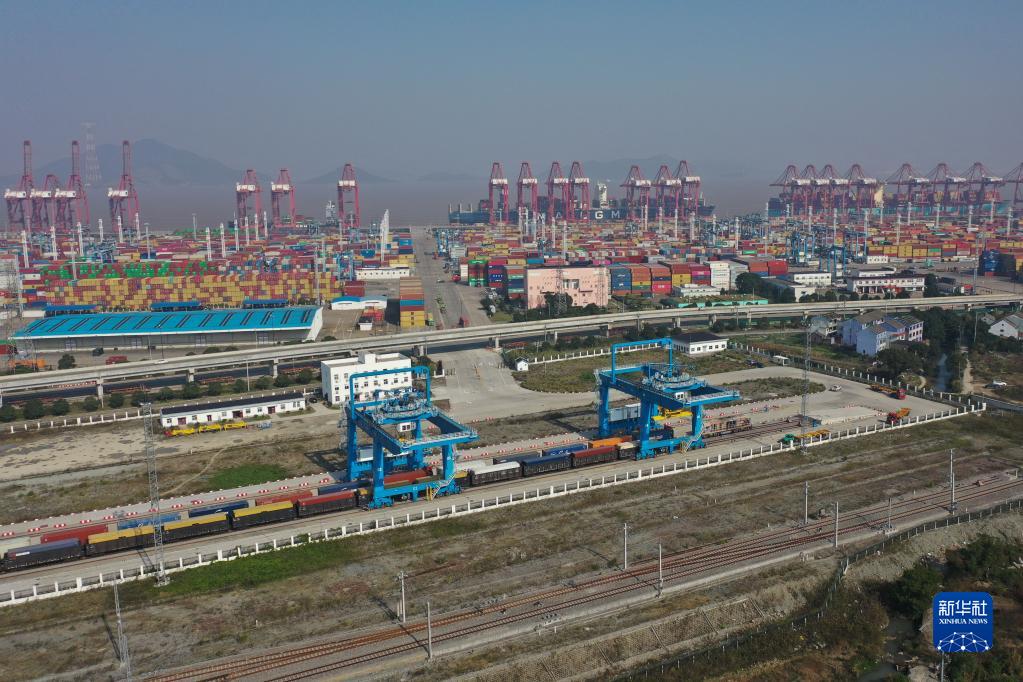 截至10月底,寧波舟山港集裝箱航線(xiàn)穩定在300條以上,海鐵聯(lián)運班列增至22條,海鐵聯(lián)運業(yè)務(wù)量同比增長(cháng)25%。新華社記者 黃宗治 攝