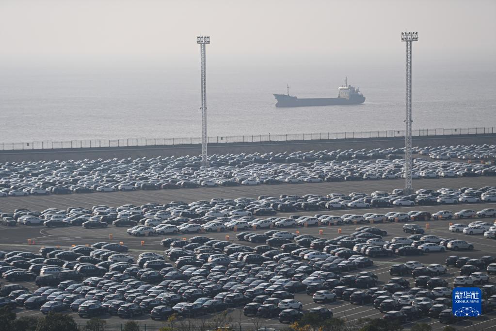大量汽車(chē)停放在浙江寧波舟山港梅東碼頭(12月13日攝)。