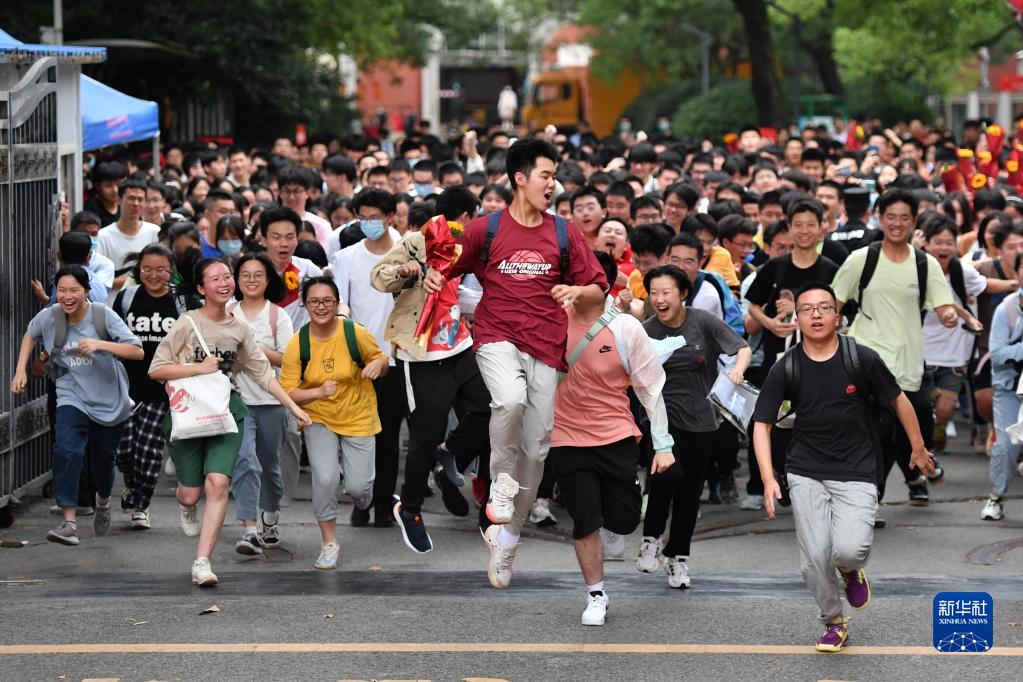 這是6月9日,湖南省長(cháng)沙市一中考點(diǎn)的考生在高考結束后跑出考場(chǎng)。