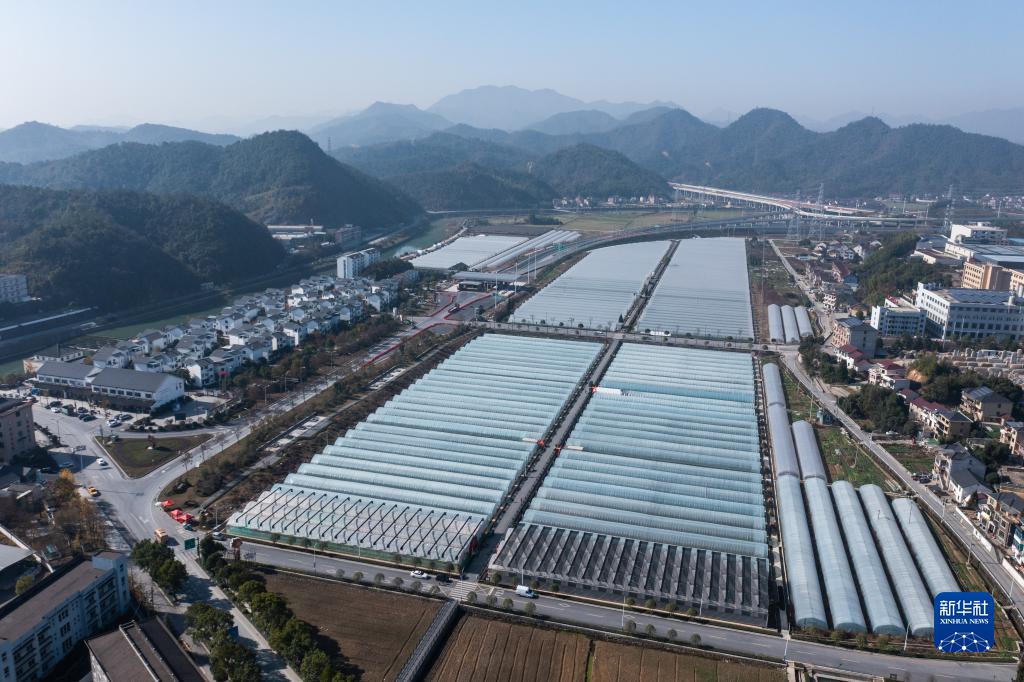 12月15日拍攝的建德市乾潭鎮草莓產(chǎn)業(yè)“共富工坊”大棚(無(wú)人機照片)。