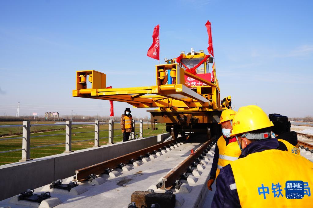 12月15日,在濟鄭高鐵山東聊城段,中鐵十局的工作人員在進(jìn)行鋪軌作業(yè)。