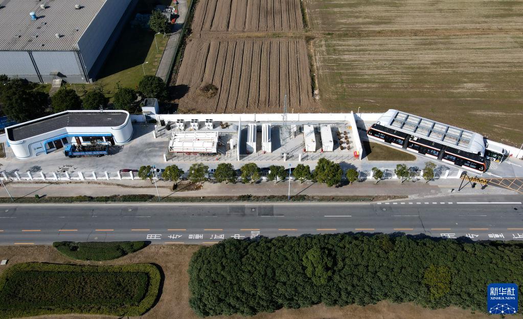 12月15日拍攝的位于臨港新城的一個(gè)氫能公交車(chē)加氣站(無(wú)人機照片)。