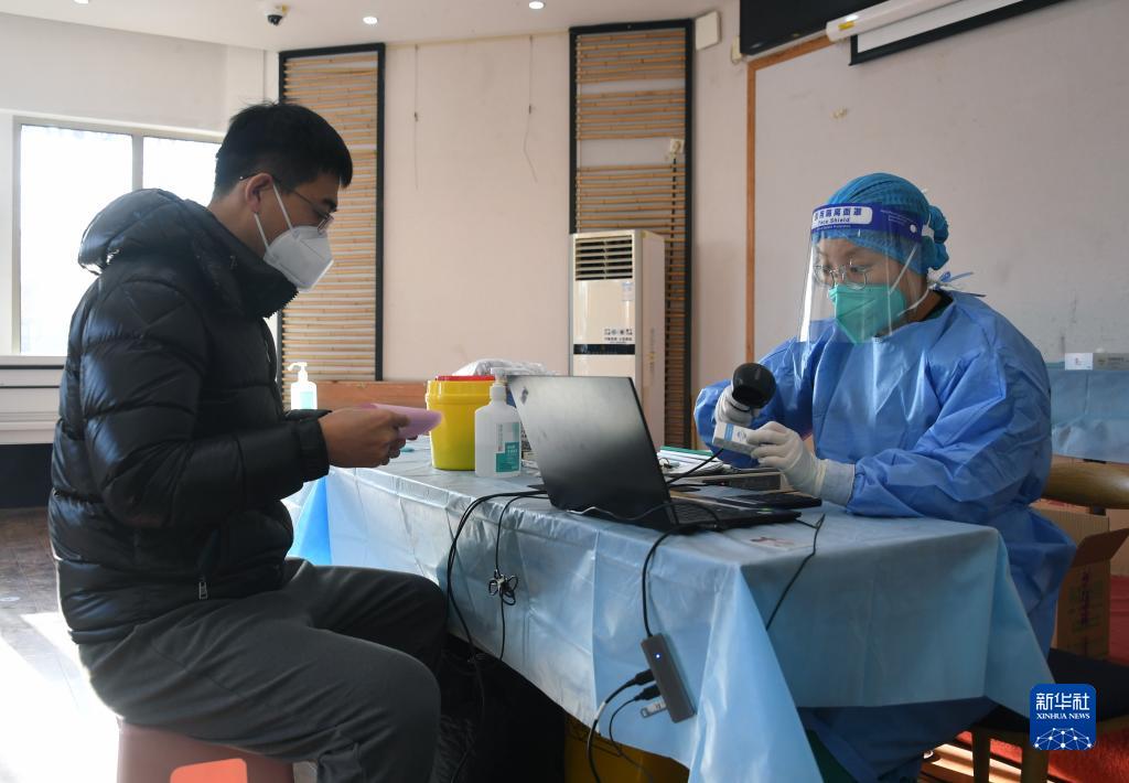12月17日,在北京市海淀區田村路街道新冠疫苗臨時(shí)接種點(diǎn),醫護人員掃描鼻噴流感病毒載體新冠肺炎疫苗,為市民接種做準備。