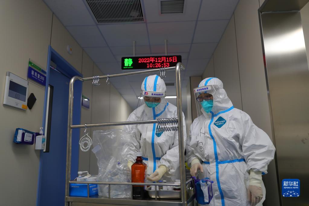 12月15日,在中國醫科大學(xué)附屬盛京醫院南湖院區發(fā)熱門(mén)診,值班護士在給患者配藥。