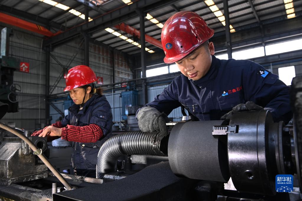 12月17日,工人在貴州省黔南布依族苗族自治州福泉市一家新型材料制造企業(yè)加工訂單配件。