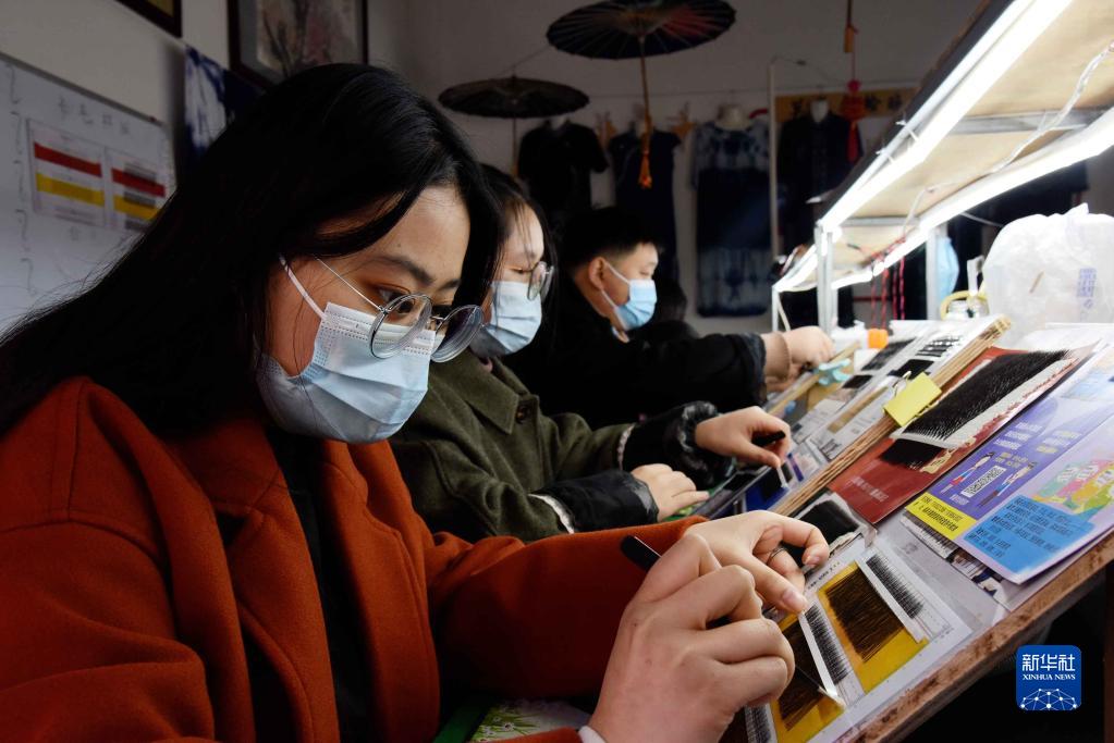 12月17日,工人在貴州省黔南布依族苗族自治州福泉市經(jīng)開(kāi)區一就業(yè)幫扶車(chē)間加工美容用品。
