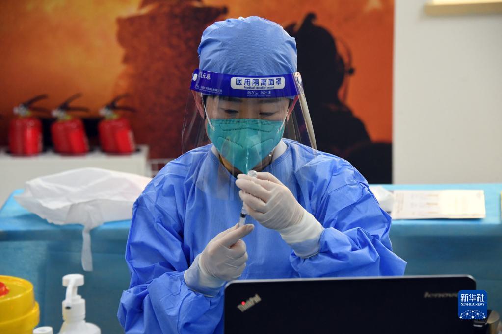 12月15日,在北京市海淀區花園路街道新冠疫苗接種點(diǎn),醫務(wù)人員進(jìn)行新冠疫苗接種前準備工作。
