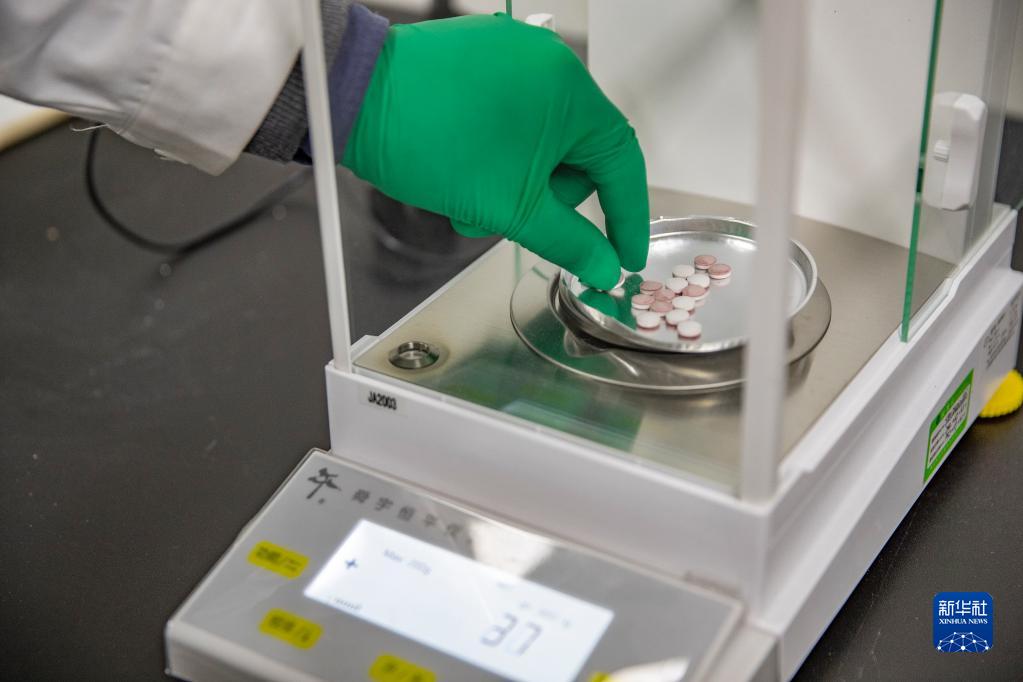 12月16日,在重慶市永川區新領(lǐng)先(重慶)生物醫藥一體化研發(fā)服務(wù)基地,新領(lǐng)先重慶研究院的研發(fā)人員對雙重壓片機壓制的實(shí)驗藥品進(jìn)行稱(chēng)重查驗。