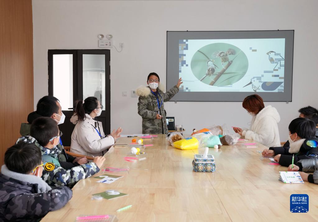 12月17日在上海崇明富圩村拍攝的濱海社區觀(guān)鳥(niǎo)生活節鳥(niǎo)類(lèi)手工坊現場(chǎng)。