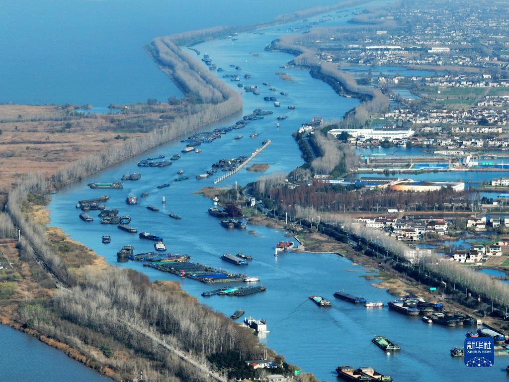 入冬以來(lái),在京杭大運河江蘇揚州段,裝載煤炭、鋼材、建材等貨物的船舶在航道上有序航行,來(lái)往如梭,運河上呈現一派繁忙景象。