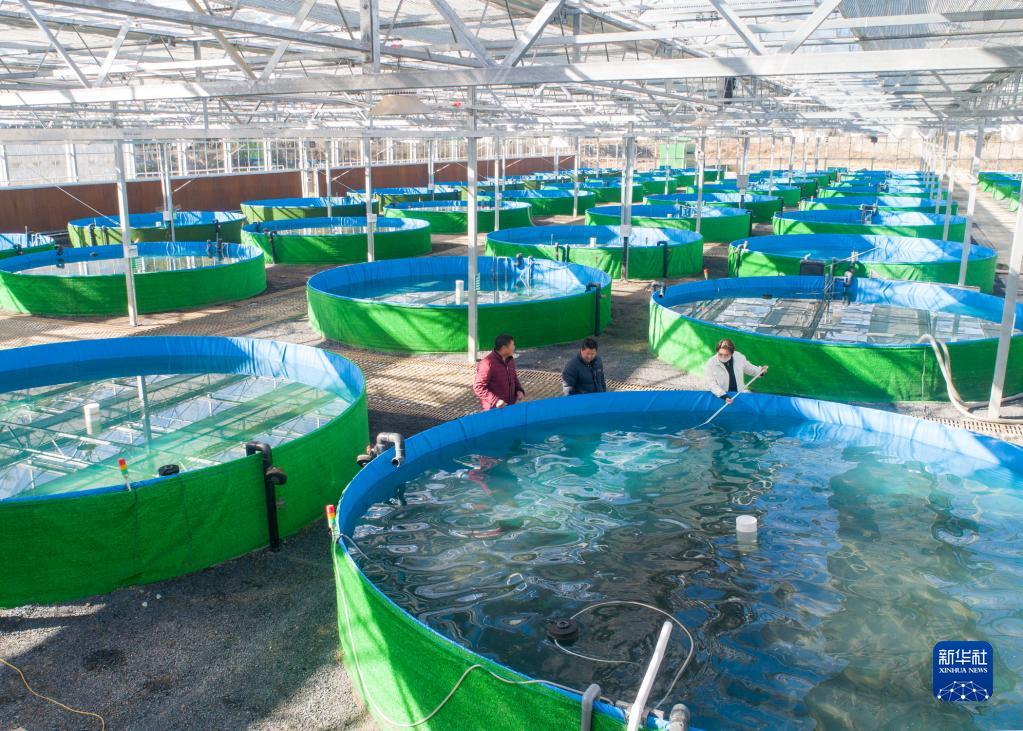 12月19日,在安吉縣天荒坪鎮的智能化養魚(yú)基地里,工人在檢查魚(yú)池。