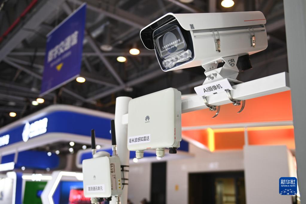 12月19日在華為公司展區拍攝的新型AI超微光電警卡口攝像機。據了解,該產(chǎn)品能高度還原車(chē)輛色彩,去除擋風(fēng)玻璃彩色條紋,車(chē)內細節清晰呈現,幫助交警部門(mén)準確執法。