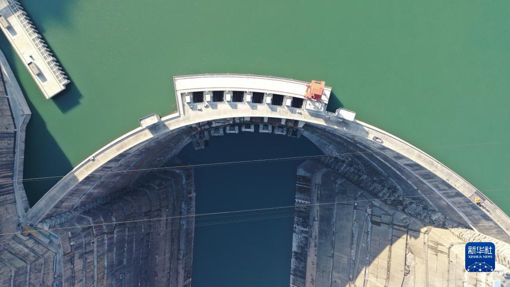 這是11月24日拍攝的白鶴灘水電站壩頂(無(wú)人機照片)。
