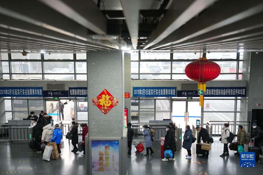12月20日,在北京四惠長(cháng)途客運站,旅客在排隊檢票。