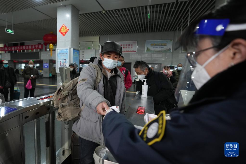 12月20日,在北京四惠長(cháng)途客運站,前往河南南樂(lè )的旅客在檢票準備乘車(chē)。