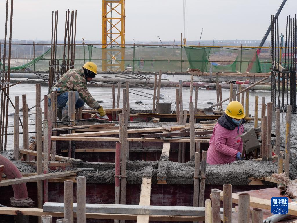 12月20日,工作人員在南昌東站施工現場(chǎng)忙碌。新華社記者 胡晨歡 攝
