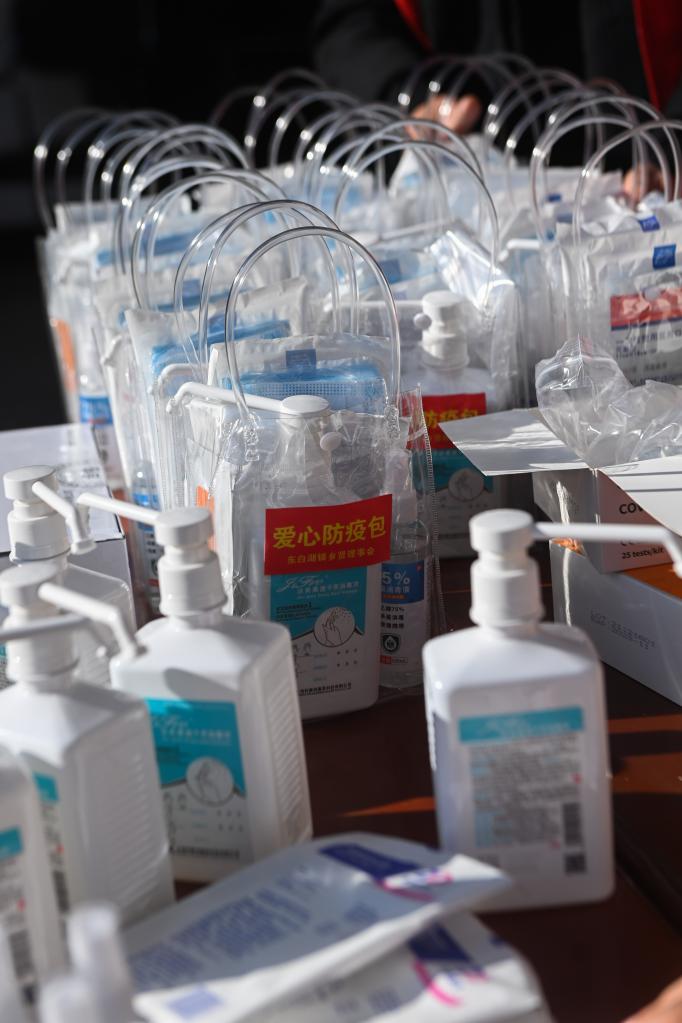 12月20日,在諸暨市東白湖鎮東白山村村委會(huì ),愛(ài)心志愿團的志愿者們正在分裝愛(ài)心防疫包。