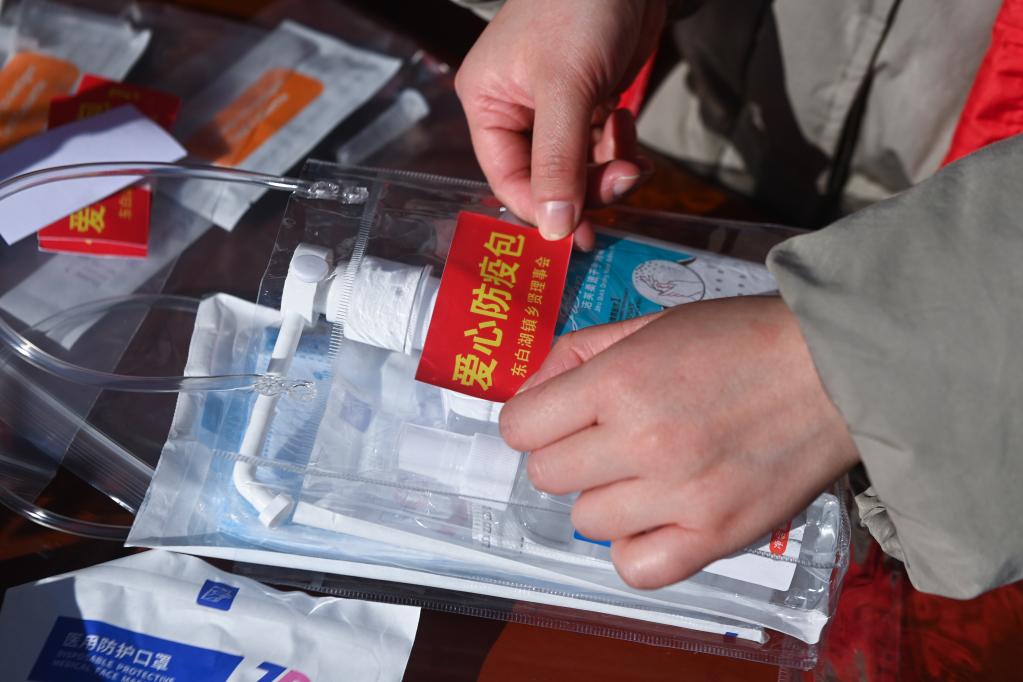 12月20日,在諸暨市東白湖鎮東白山村村委會(huì ),愛(ài)心志愿團的志愿者們在分裝愛(ài)心防疫包。
