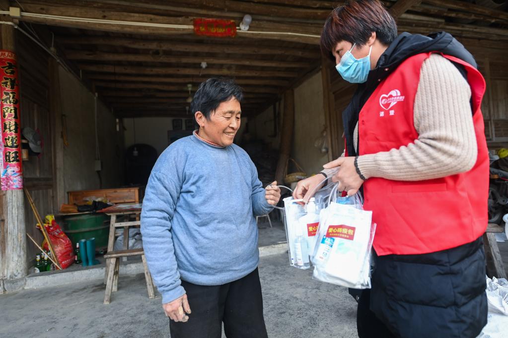 為了保證這些老年人的身體健康,東白湖鎮各村都組建了由村里的黨員、干部、鄉賢等組成的愛(ài)心志愿團隊,籌集退燒藥、抗原檢測試劑、消毒液、口罩等防疫物資,分送給行動(dòng)不便及年老體弱的老人們。同時(shí),鎮衛生院的家庭醫生還為老人及留守兒童提供免費上門(mén)看診、健康監測等服務(wù)。