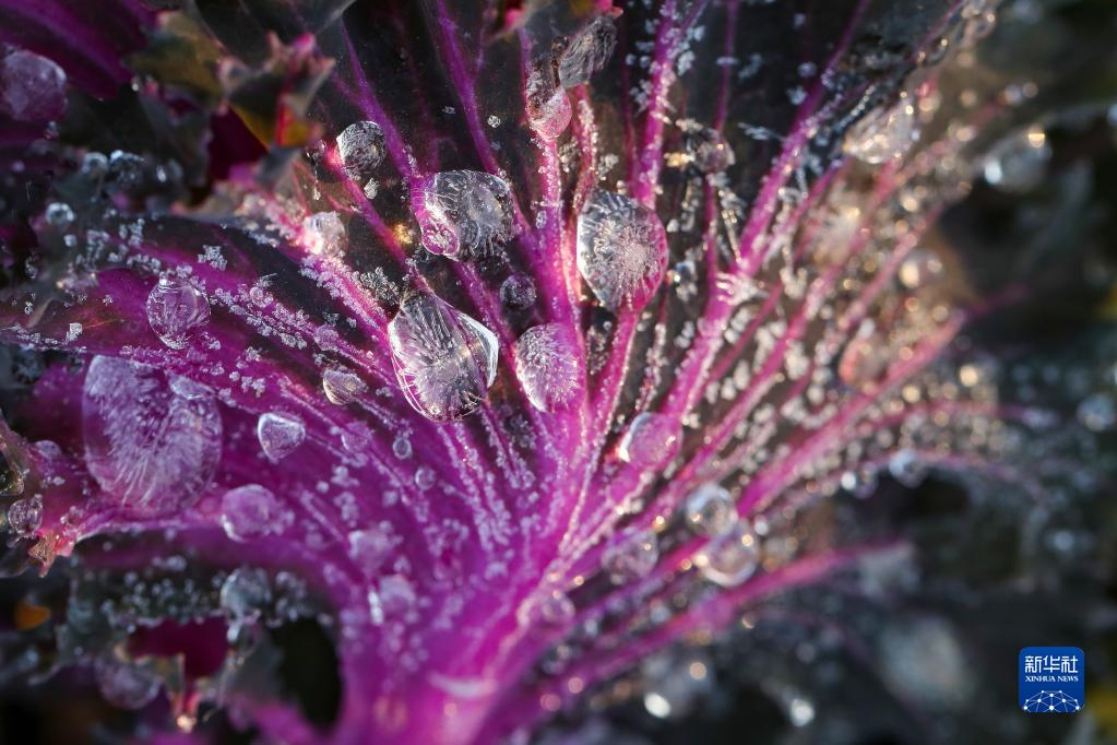 12月17日,江蘇省揚州市瘦西湖風(fēng)景區的植物結冰花。