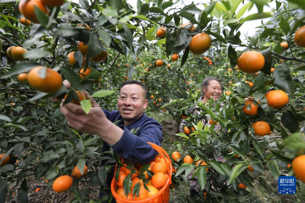12月20日,村民在貴州省貴陽(yáng)市開(kāi)陽(yáng)縣云開(kāi)街道石頭村沃柑種植果園采摘沃柑。