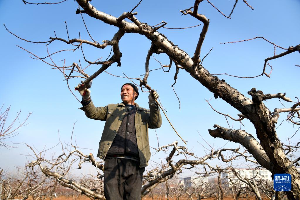 12月21日,山東省棗莊市山亭區水泉鎮云峰山村農民在果園修剪桃樹(shù)。