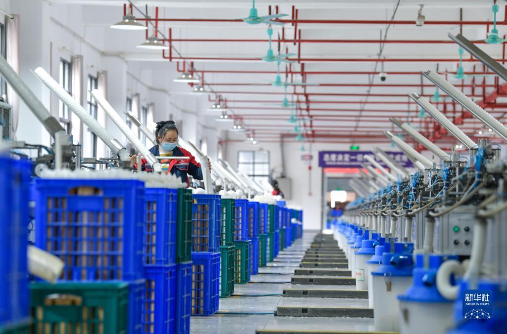 在錦屏經(jīng)濟開(kāi)發(fā)區貴州亞獅龍體育文化產(chǎn)業(yè)發(fā)展有限公司羽毛球生產(chǎn)基地,工人在生產(chǎn)羽毛球(12月19日攝)。