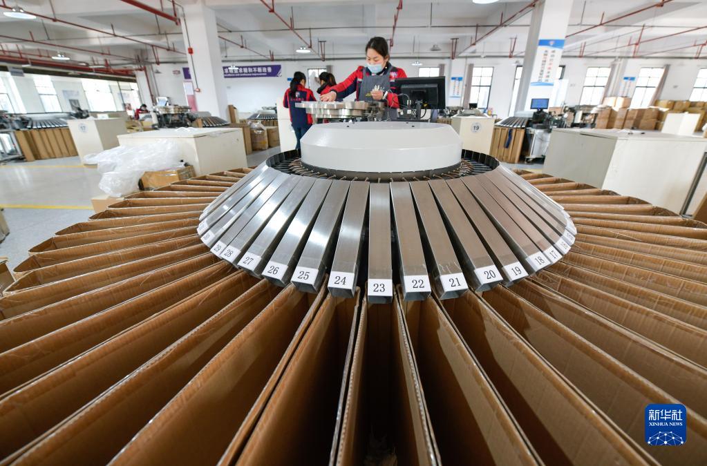 在錦屏經(jīng)濟開(kāi)發(fā)區貴州亞獅龍體育文化產(chǎn)業(yè)發(fā)展有限公司羽毛球生產(chǎn)基地,工人在生產(chǎn)羽毛球(12月19日攝)。