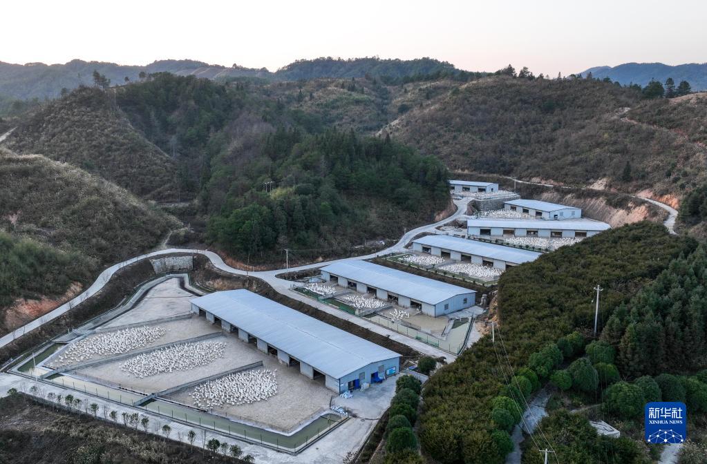 這是12月19日拍攝的貴州省錦屏縣銅鼓鎮馬臺生態(tài)種鵝養殖基地(無(wú)人機照片)。