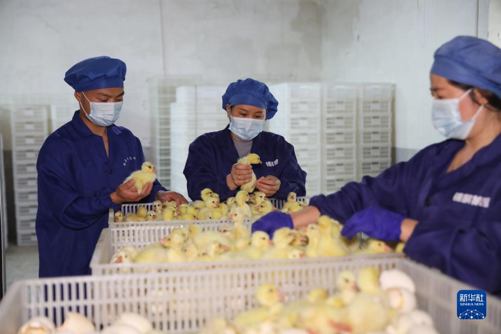 員工在貴州省錦屏縣新化鄉生態(tài)鵝業(yè)孵化基地檢查幼鵝生長(cháng)情況(3月14日攝)。