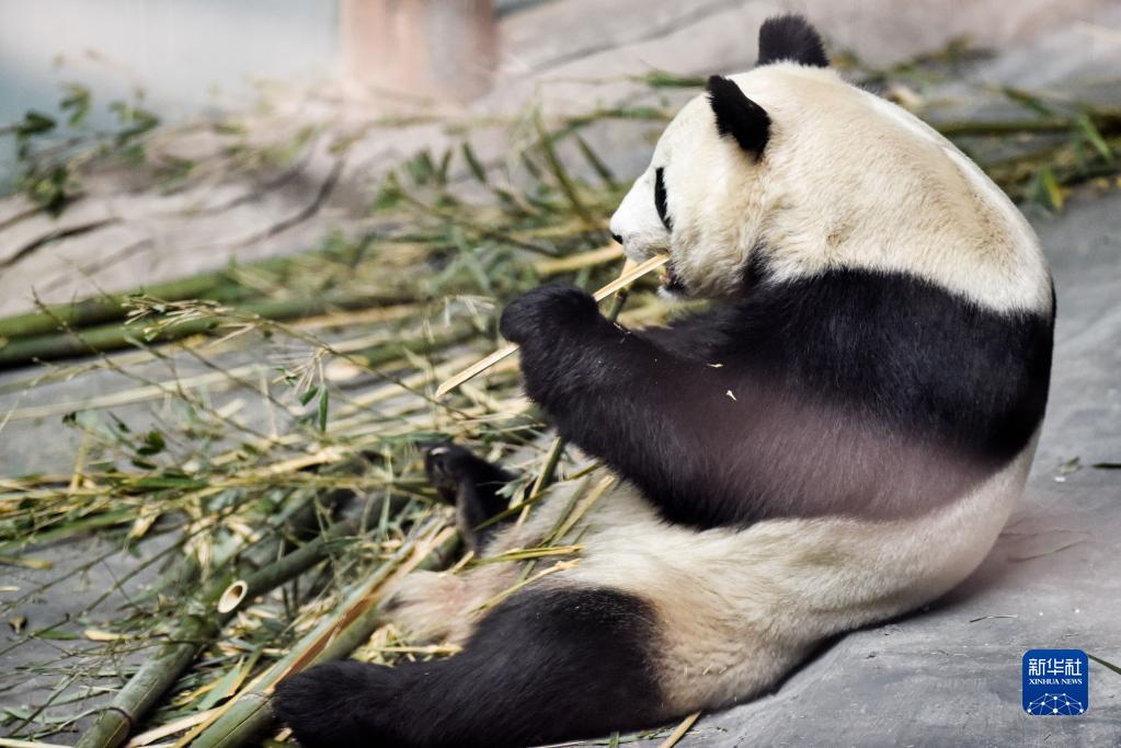 12月22日,在西寧熊貓館,大熊貓在吃竹子。