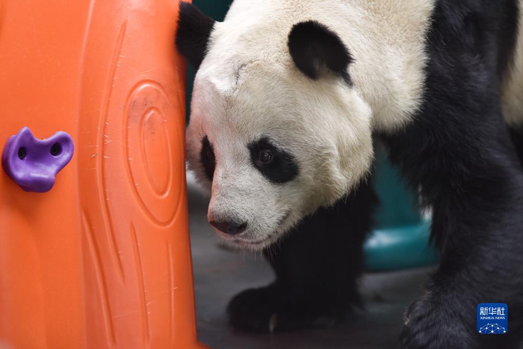 12月22日,在西寧熊貓館,大熊貓在玩耍。