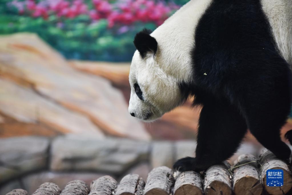 12月22日,在西寧熊貓館,大熊貓在玩耍。