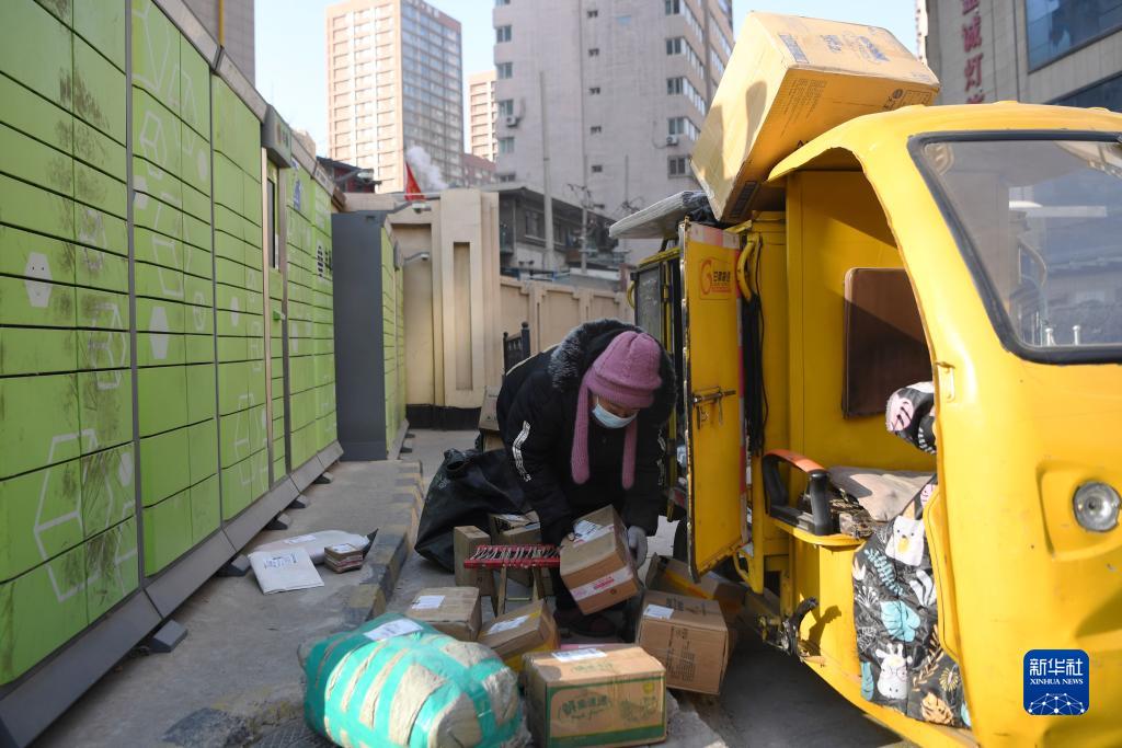 12月23日,在蘭州市城關(guān)區,一名快遞員在小區外派送快件。
