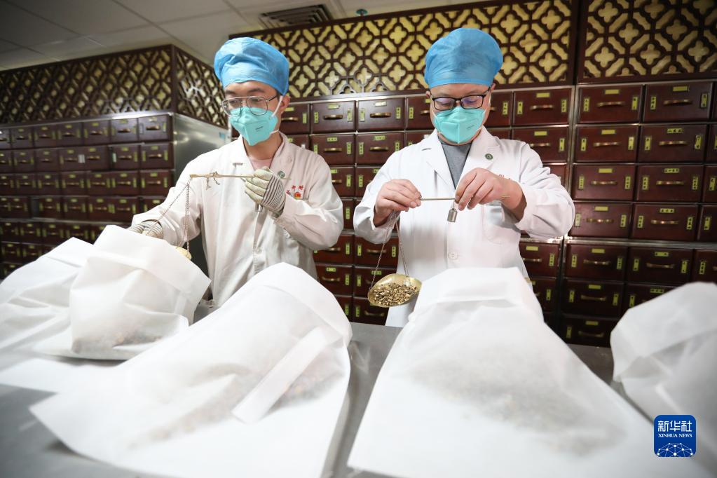 12月23日,在甘肅中醫藥大學(xué)附屬醫院中藥房,藥師調配中藥方劑。