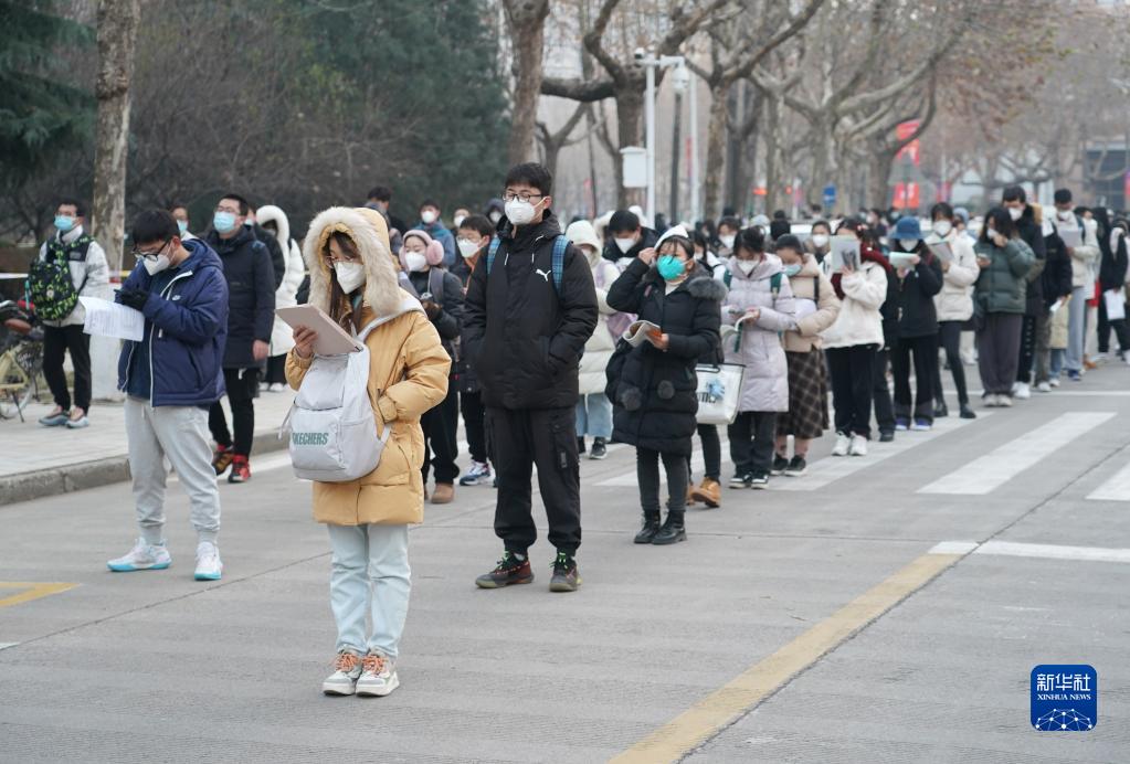 12月24日,在西北大學(xué)考點(diǎn),考生排隊進(jìn)入考場(chǎng)。