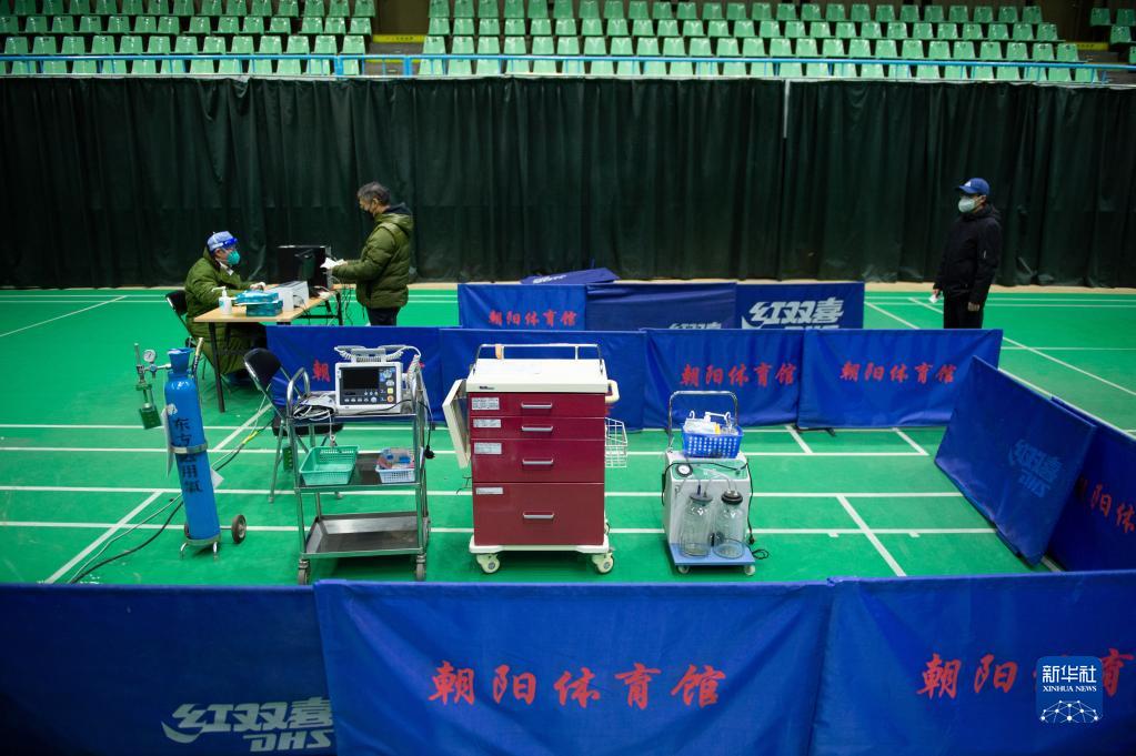 在朝陽(yáng)體育館內的朝陽(yáng)醫院第二發(fā)熱門(mén)診,院方準備了一臺急救設備以應對緊急情況(12月24日攝)。