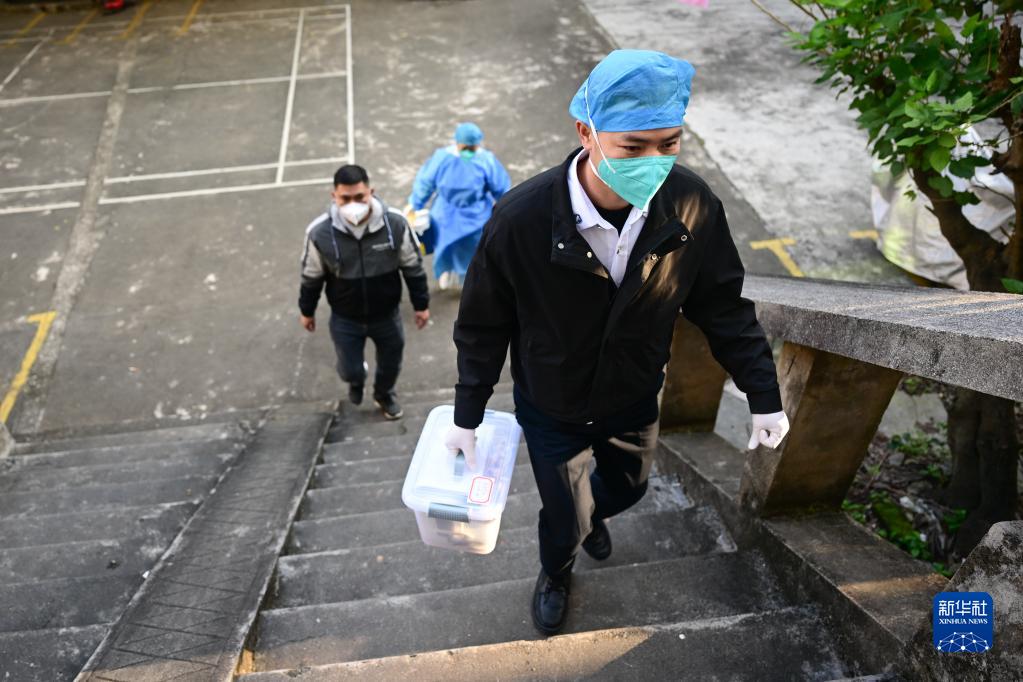 12月23日,醫護人員走進(jìn)文昌市文城鎮文嶺社區,準備上門(mén)為社區老年人接種新冠疫苗。