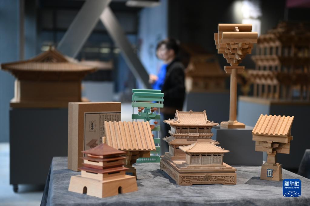 2022年11月4日,位于浙江省杭州市臨平區的大運河1986文創(chuàng )園啟用,觀(guān)眾在文創(chuàng )園的中國榫卯技藝體驗空間參觀(guān)古建筑積木。