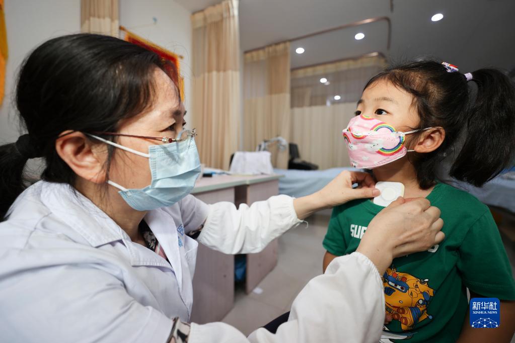 2022年7月16日,入伏首日,江蘇省連云港市贛榆區中醫院的醫務(wù)人員為孩子貼“三伏貼”。