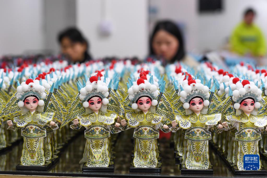 2022年3月1日,在貴州省黔南布依族苗族自治州惠水縣幸福移民社區的唐人坊產(chǎn)教融合基地,工人在驗收即將完工的“唐娃娃”。這些“唐娃娃”被發(fā)往北京作為冬殘奧會(huì )的禮品。