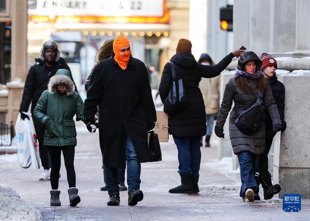 12月24日,人們冒著(zhù)嚴寒在美國芝加哥市中心購物。