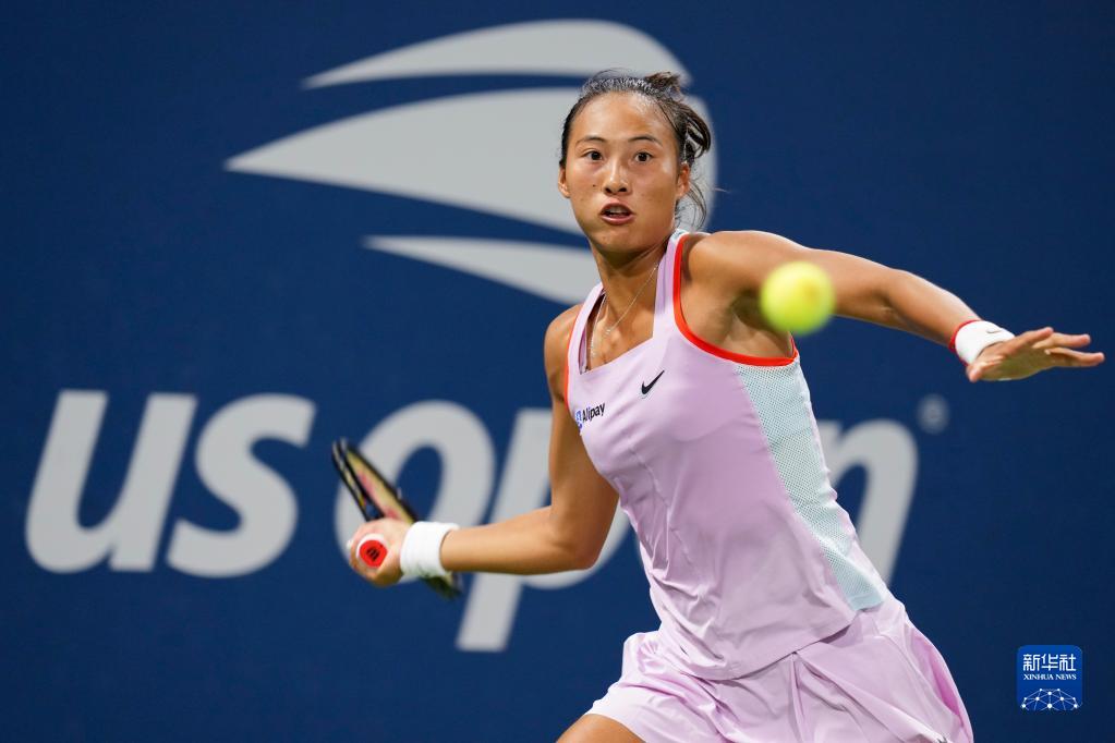 這是2022年9月3日,鄭欽文在2022美國網(wǎng)球公開(kāi)賽女子單打第三輪對陣德國選手尼邁爾的比賽中回球。