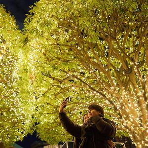 12月25日,游客在日本東京惠比壽花園點(diǎn)亮燈光的樹(shù)下合影留念。年末將近,東京多地點(diǎn)亮燈光辭舊迎新。新華社記者 張笑宇 攝