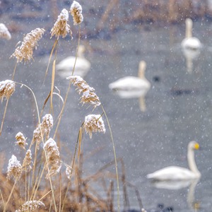 日前,河南三門(mén)峽天鵝湖國家城市濕地公園迎來(lái)小雪。白天鵝在雪中游弋,與冬景相映成趣。
