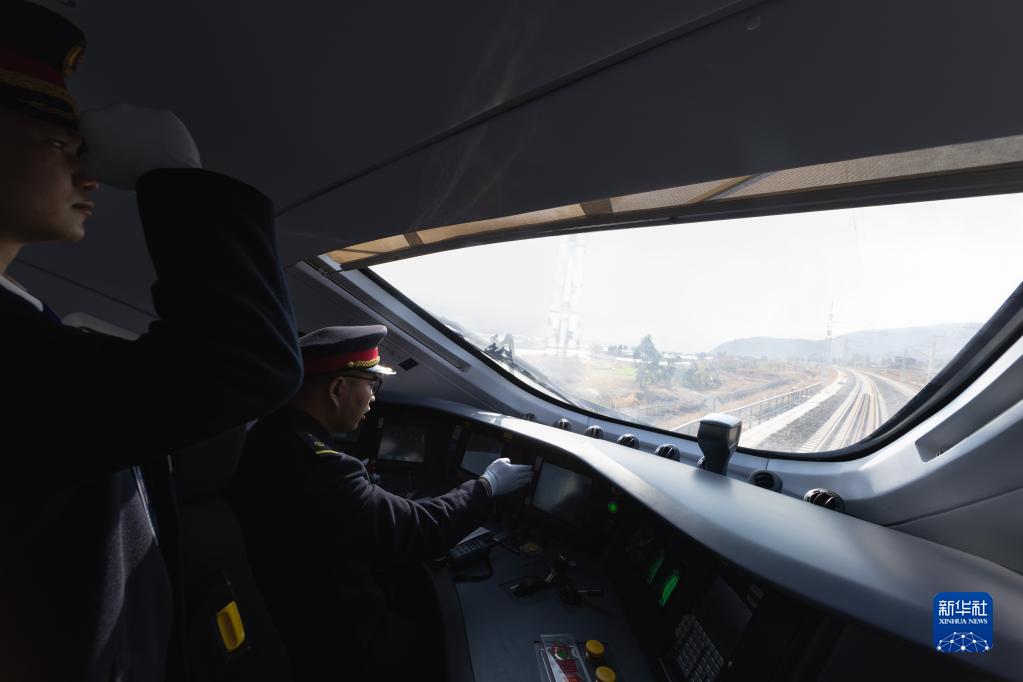 12月26日,列車(chē)駕駛員姜海亮(右)、廖俊杰駕駛新成昆鐵路首發(fā)列車(chē)。