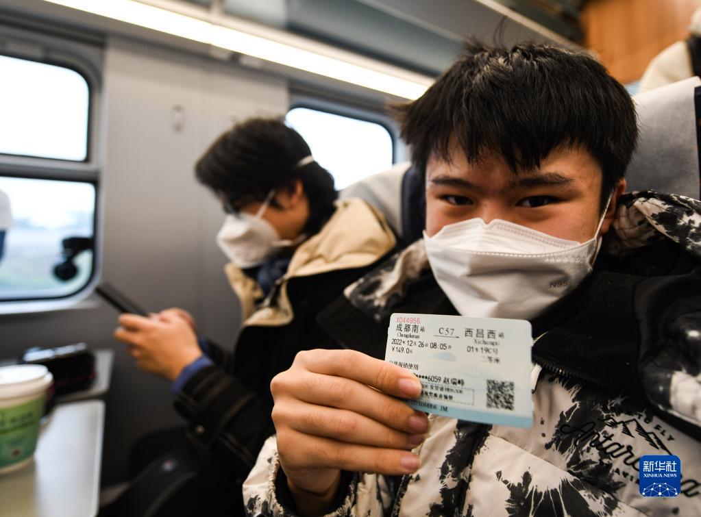 12月26日,乘客展示新成昆鐵路首發(fā)列車(chē)車(chē)票。