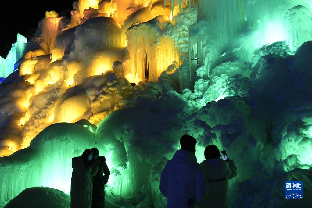 元旦將至,甘肅省積石山保安族東鄉族撒拉族自治縣大墩峽景區內的冰瀑、冰掛等景觀(guān)流光溢彩,夢(mèng)幻的冰雪世界吸引了八方賓客前來(lái)賞景游玩。