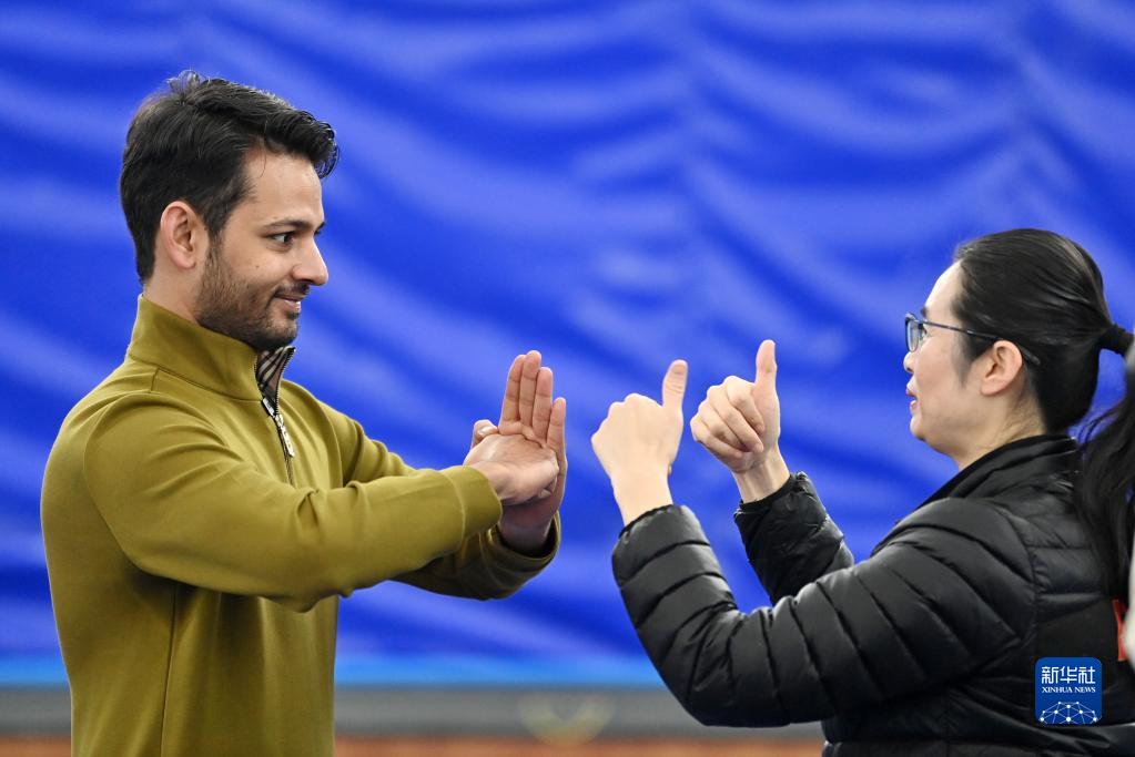 在天津市西青區精武鎮精武會(huì )館,穆罕默德·納比爾(左)得到霍靜虹的贊賞(12月25日攝)。