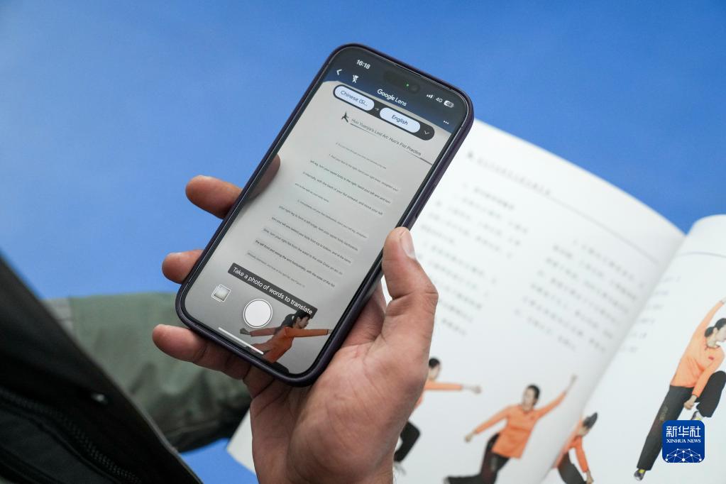 在天津市西青區精武鎮精武會(huì )館,穆罕默德·納比爾利用翻譯軟件閱讀有關(guān)“霍氏練手拳”的書(shū)籍(12月25日攝)。